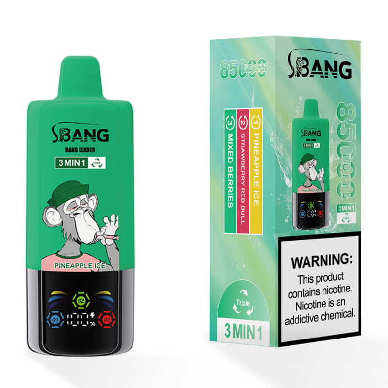 The Bang Leader Triple 85K Disposable Vape delivers up to 85,000 puffs, making it one of the longest-lasting disposable devices available. Powered by a high-capacity 850mAh rechargeable battery and equipped with Type-C fast charging, it ensures consistent performance for extended use. Each device comes prefilled with premium e-liquid, designed to provide smooth clouds and bold flavor delivery.